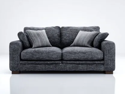 El sofá está tapizado con tejido resistente en color gris oscuro que ofrece una textura agradable y durabilidad en el uso diario. La estructura interior está diseñada para proporcionar estabilidad y soporte mientras que el acolchado del asiento y del respaldo mejora la comodidad general.
