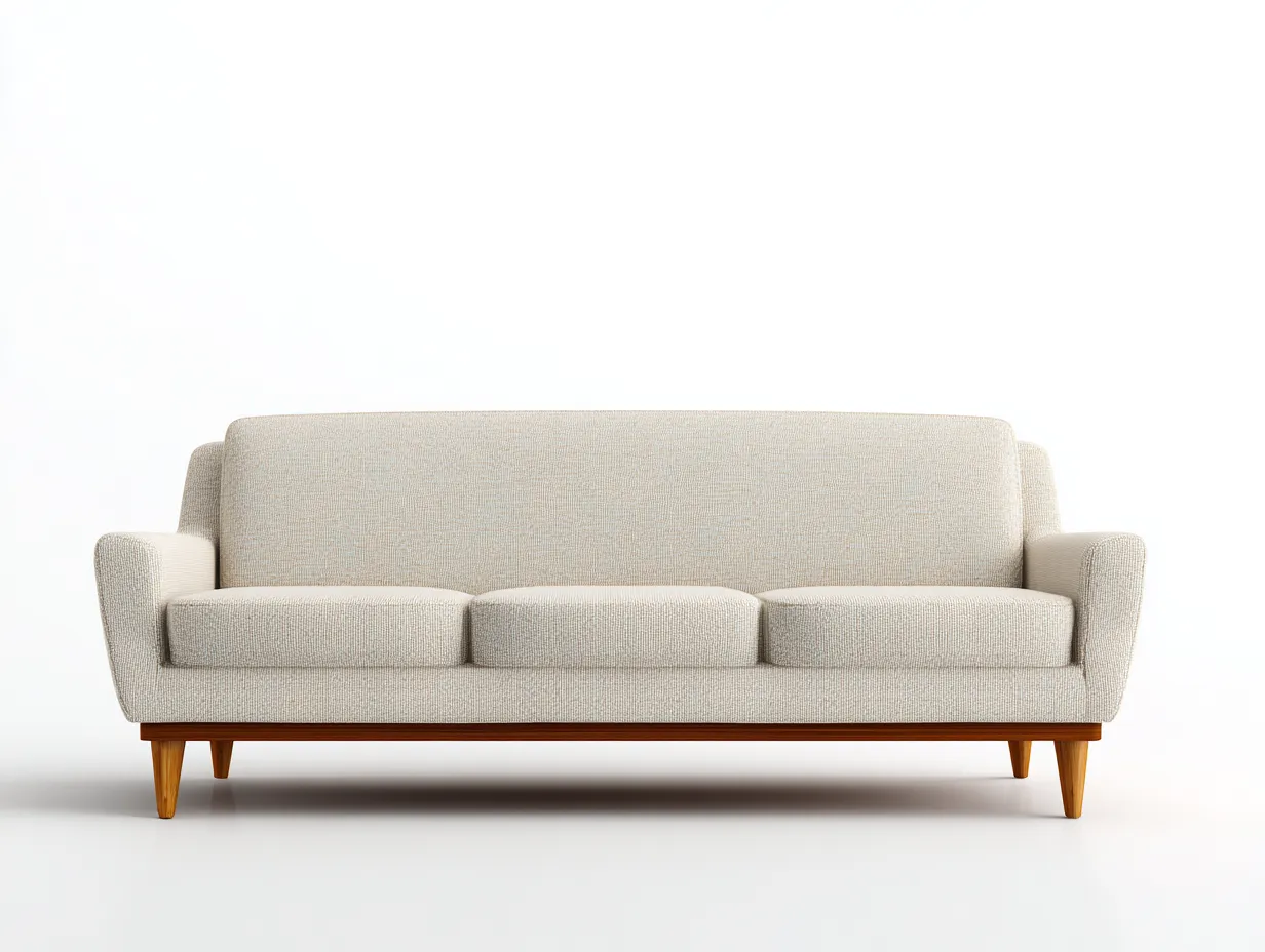El diseño de tres plazas ofrece un espacio amplio para descansar o compartir momentos con la familia. Los reposabrazos laterales y el respaldo acolchado proporcionan una postura cómoda y equilibrada. Su diseño limpio y moderno permite integrarlo fácilmente en diferentes estilos de decoración.
